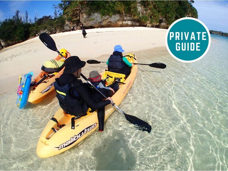 【恩納村・無人島カヤック/シュノーケリング】3歳~OK★1グループ1ガイドの完全貸切制★カヤックで行く無人島熱帯魚シュノーケル