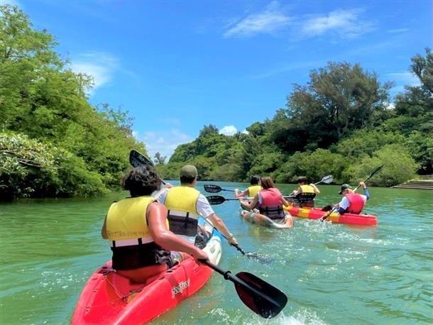 嘉手納町の比謝川で楽しむマングローブカヤックツアーです。 川幅が広く流れも比較的ゆるやかなため、 はじめての方でも参加しやすい自然体験として人気があります。