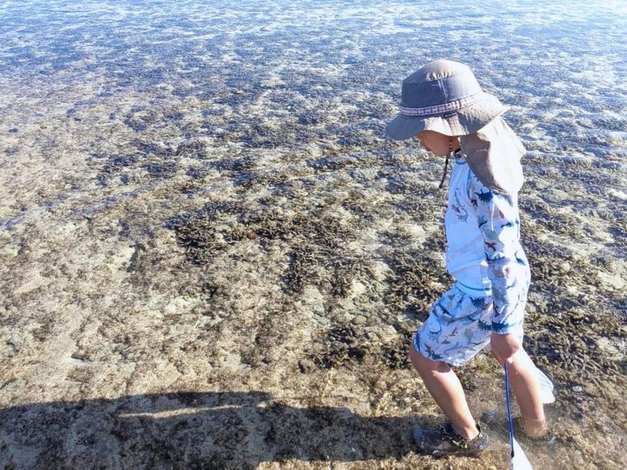 干潮時限定プログラムです!「ゆしゆし」から徒歩2分の海で、たくさんの生き物を見て、触れて、観察しよう♪