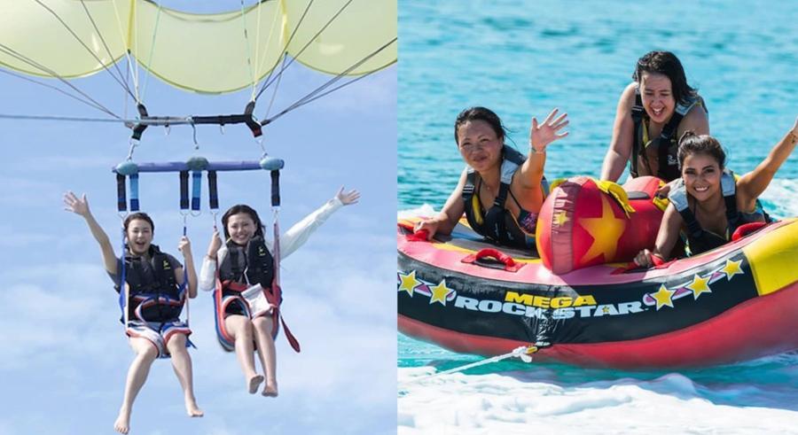 【東海岸・海中道路・セットプラン】にこちゃんパラセーリング100m&マリンチューブ3種類セット